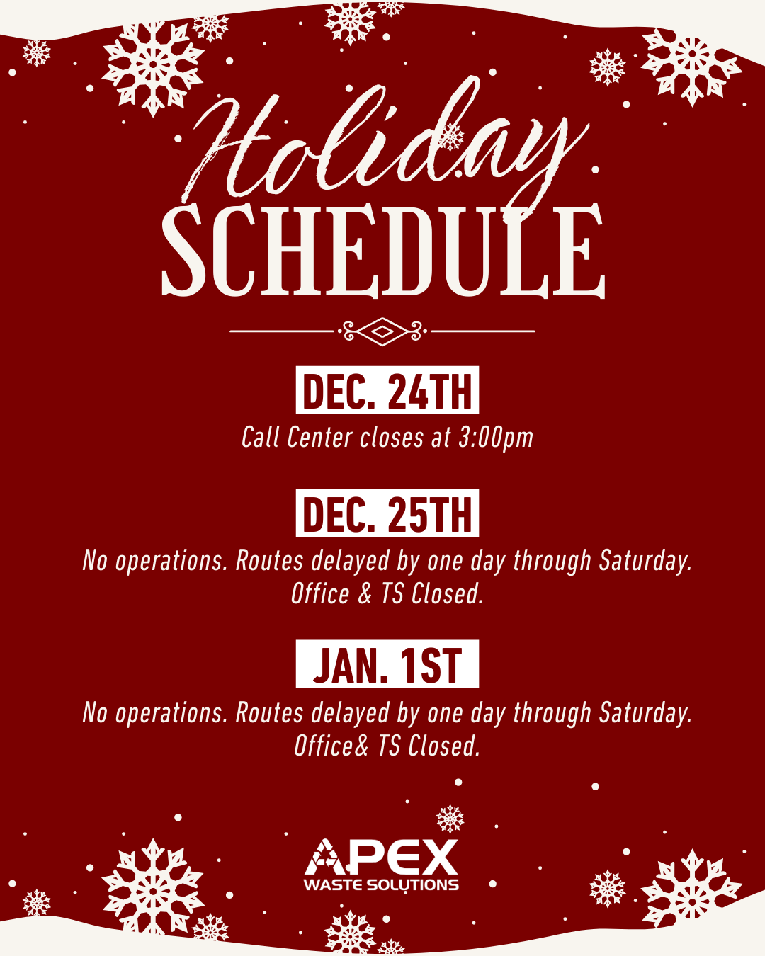 RESIDENTIAL SERVICE DAYS & CALENDARS